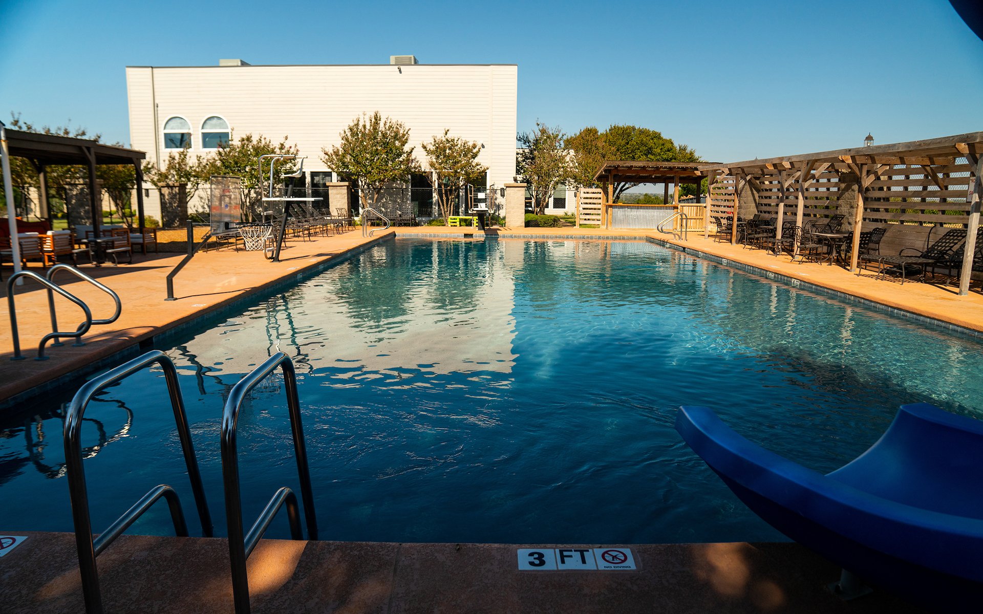 Among the highlights of this splendid complex is a carefully designed diving well, beckoning to those who seek the thrill of plunging into refreshing waters. In addition to the diving well, a delightful and secure pool dedicated exclusively to kids has been incorporated into the facility's layout. This pool is a haven for young ones, offering a safe and shallow area where they can frolic and build water confidence under the watchful eyes of trained lifeguards. The child-friendly design ensures parents can relax and unwind while their little ones delight in the aquatic adventures.